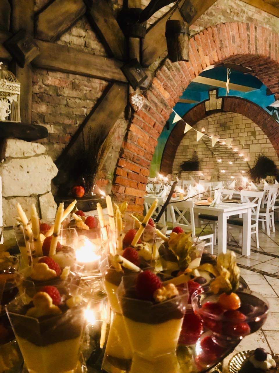 Z przyjemnością i olbrzymim zaangażowaniem organizujemy bankiety weselne, przyjęcia komunijne, urodzinowe, konsolacje oraz inne okolicznościowe spotkania. Do każdego przyjęcia podchodzimy indywidualnie, a menu staramy się zawsze dopasować do Waszych potrzeb, preferencji i budżetu. Posiadamy dwie zupełnie niezależne sale, każda w nieco innym klimacie. W każdej sali pomieścimy ponad 100 osób. Nasze sale przystosowane są do tańczenia, posiadają podest dla DJa lub orkiestry.