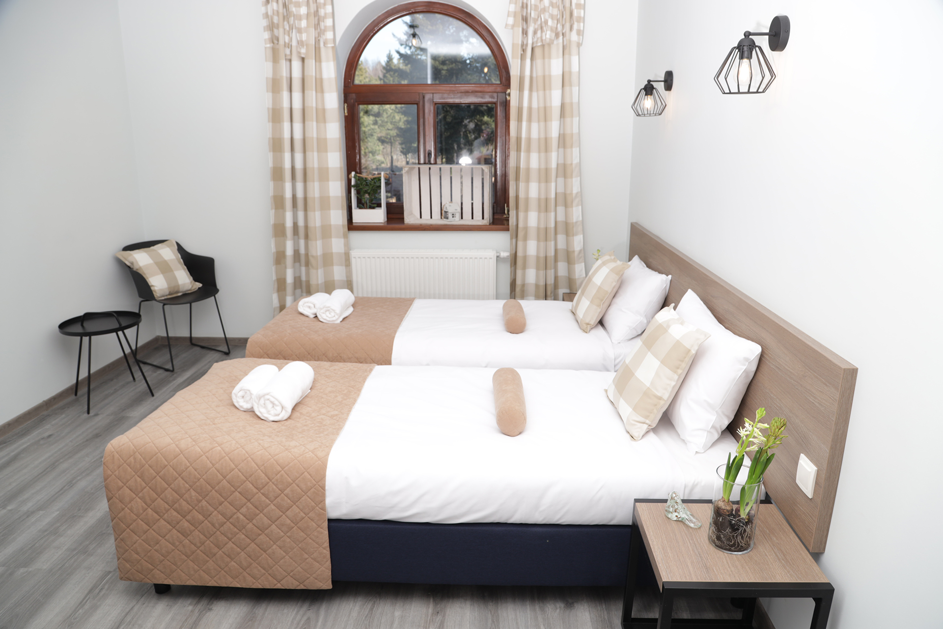 Poznaj nasze funkcjonalne pokoje o dobrym standardzie. Wszystkie z gustem, ciekawie zaaranżowane. To przestronne wnętrza z dużym, jasnym oknem i komfortowym miejscem do pracy. W pokojach typu standard można wygospodarować miejsce na łóżeczko turystyczne dla dziecka. Pokoje z dwoma pojedynczymi łóżkami typu Twin, z możliwością złączenia w jedno.