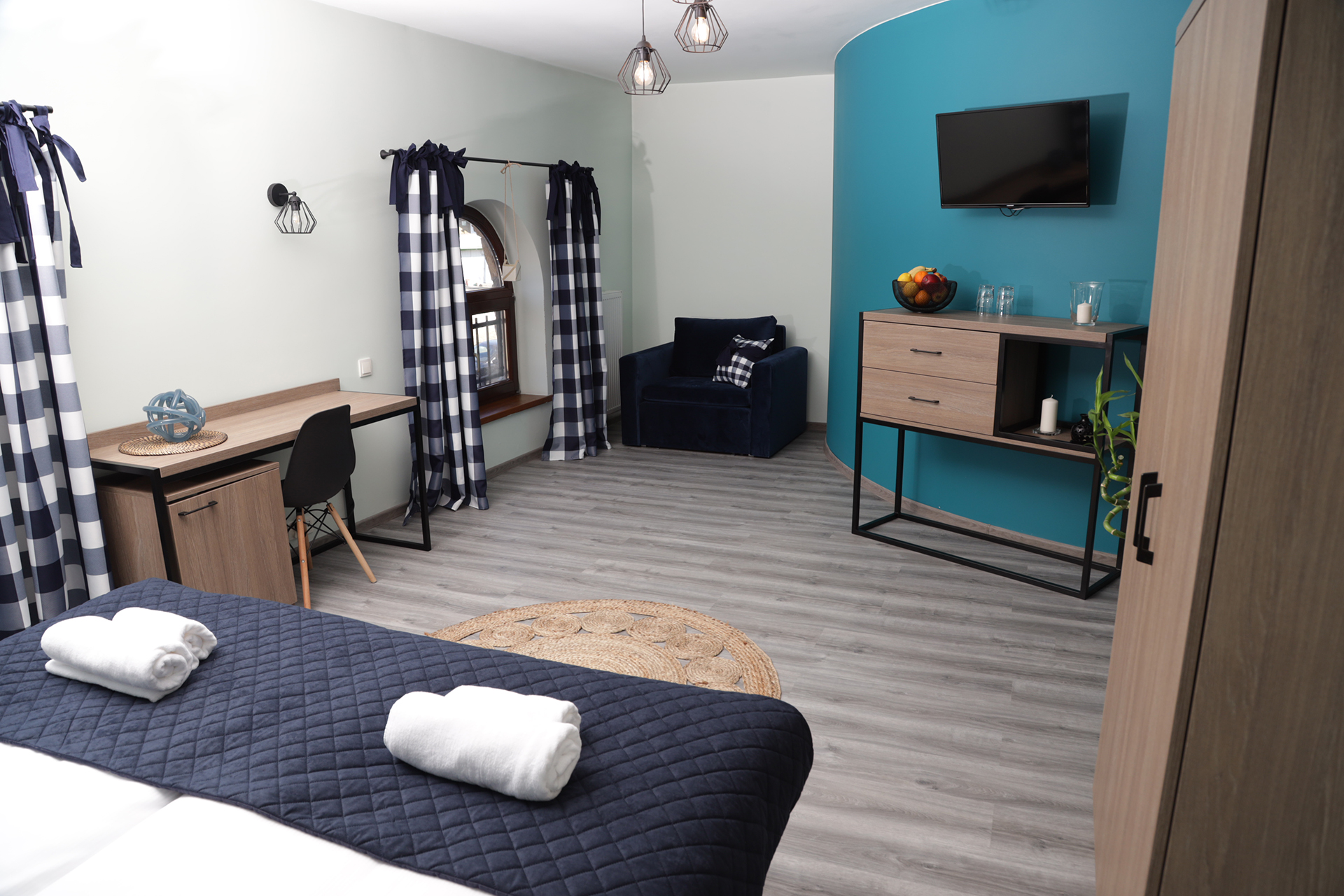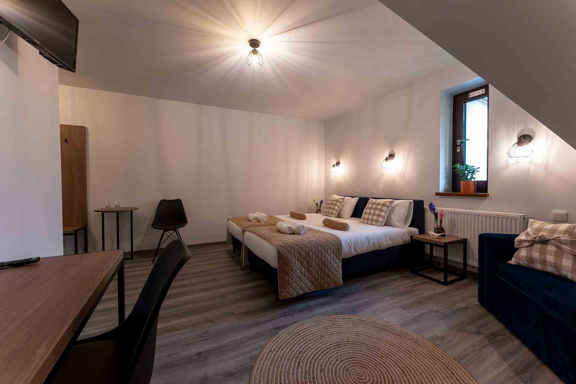Jesteśmy kameralnym hotelem w stylu butikowym. Choć wszystkie pokoje urządzone zostały w podobnym stylu, to każdy z nich jest wyjątkowy i niepowtarzalny. W naszym obiekcie nie znajdziecie dwóch identycznych pokoi, a ich wnętrza zaprojektowaliśmy tak, by każdy z Gości znalazł ten idealny dla siebie. Wierzymy, że uda nam się trafić w Wasze gusta i sprostać nawet najbardziej wyszukanym oczekiwaniom. Mamy nadzieję, że nie jeden raz miło Was zaskoczymy.